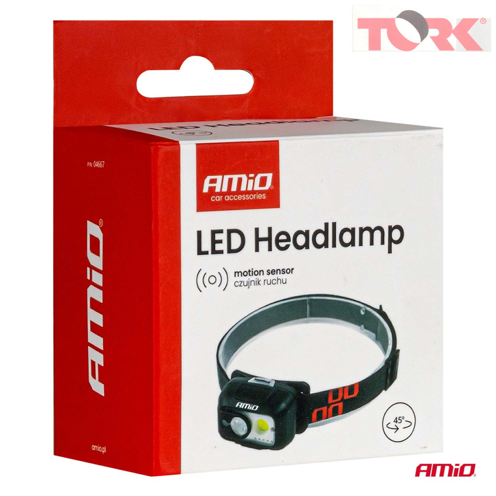 Újratölthető fejlámpa mozgásérzékelővel XPG+COB 1800mAh (AKKU) AMIO-04667